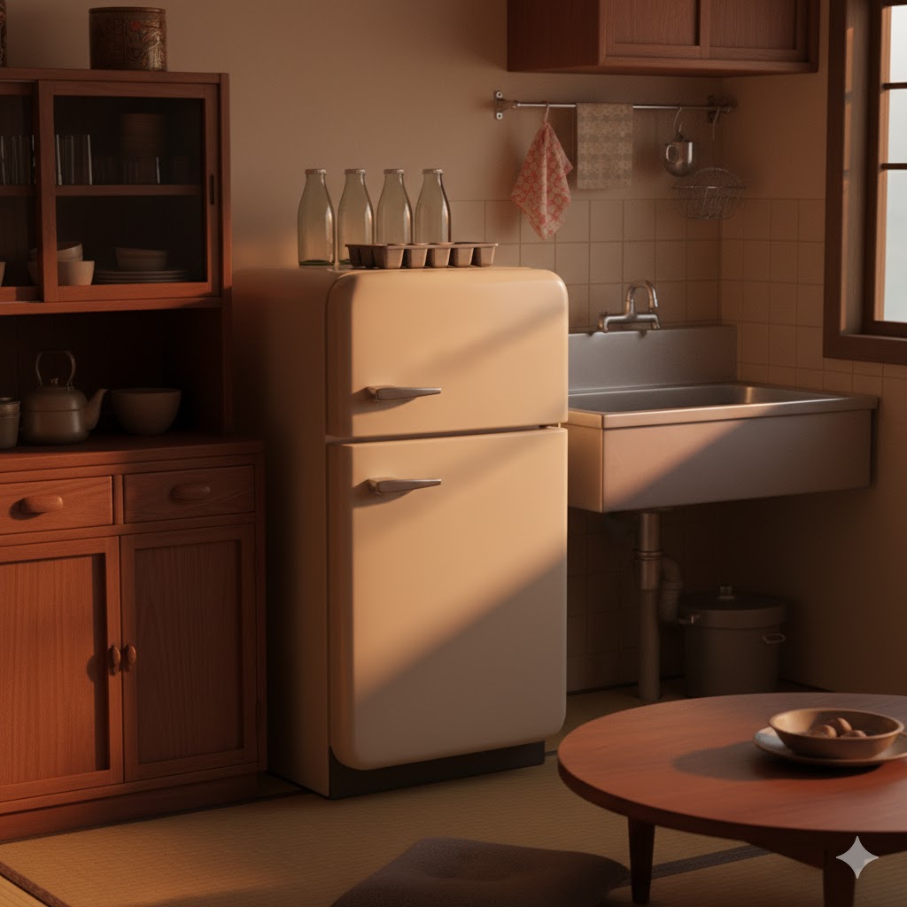 今のような多機能・多ドア冷蔵庫とはだいぶ違うが、